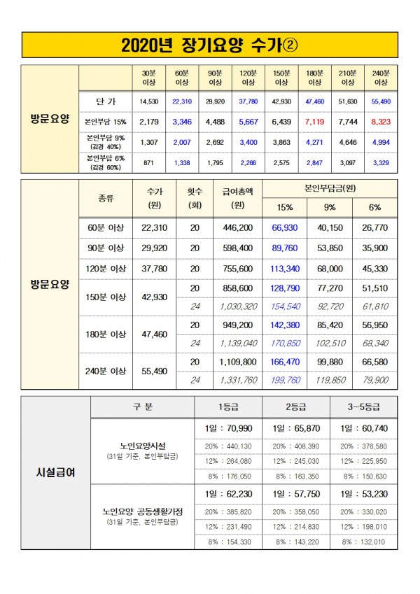2020 방문요양, 방문목욕, 방문간호 장기요양 수가 안내 페이지 정보 작성자 지웹 작성일20-02-06 14:27 조회820회 댓글0건 관련링크 이전글 목록 본문 2020 방문요양, 방문목욕, 방문간호 장기요양 수가 안내 이전글 목록